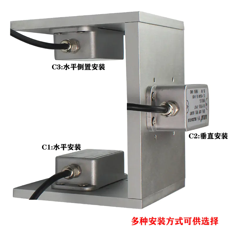 水平安装,显而易见就是把倾角传感器水平放在一个平面上,比如地面、桌面等,垂直安装则是把倾角传感器安装在垂直于大地的一个稳定的面上,比如墙面等。