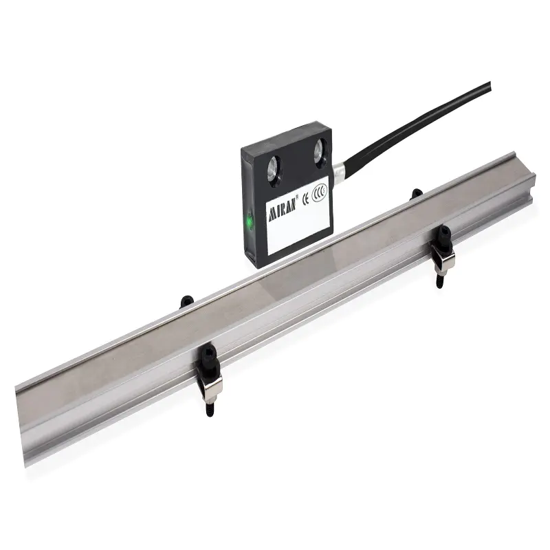 磁栅尺位移传感器的安装与维护也及其简便,一种安装方法是直接将传感器磁尺用双面胶贴于设备安装处,两端可用螺丝固定,另一种方法是支架安装固定。型材切割机床的行程较大,常采用前者。传感器安装调试好后,也不用过多的维护。除切割机床外,磁栅尺位移传感器在铣床、磨床、冲压机床、锻造机床等各类机床设备中也有广泛的应用。