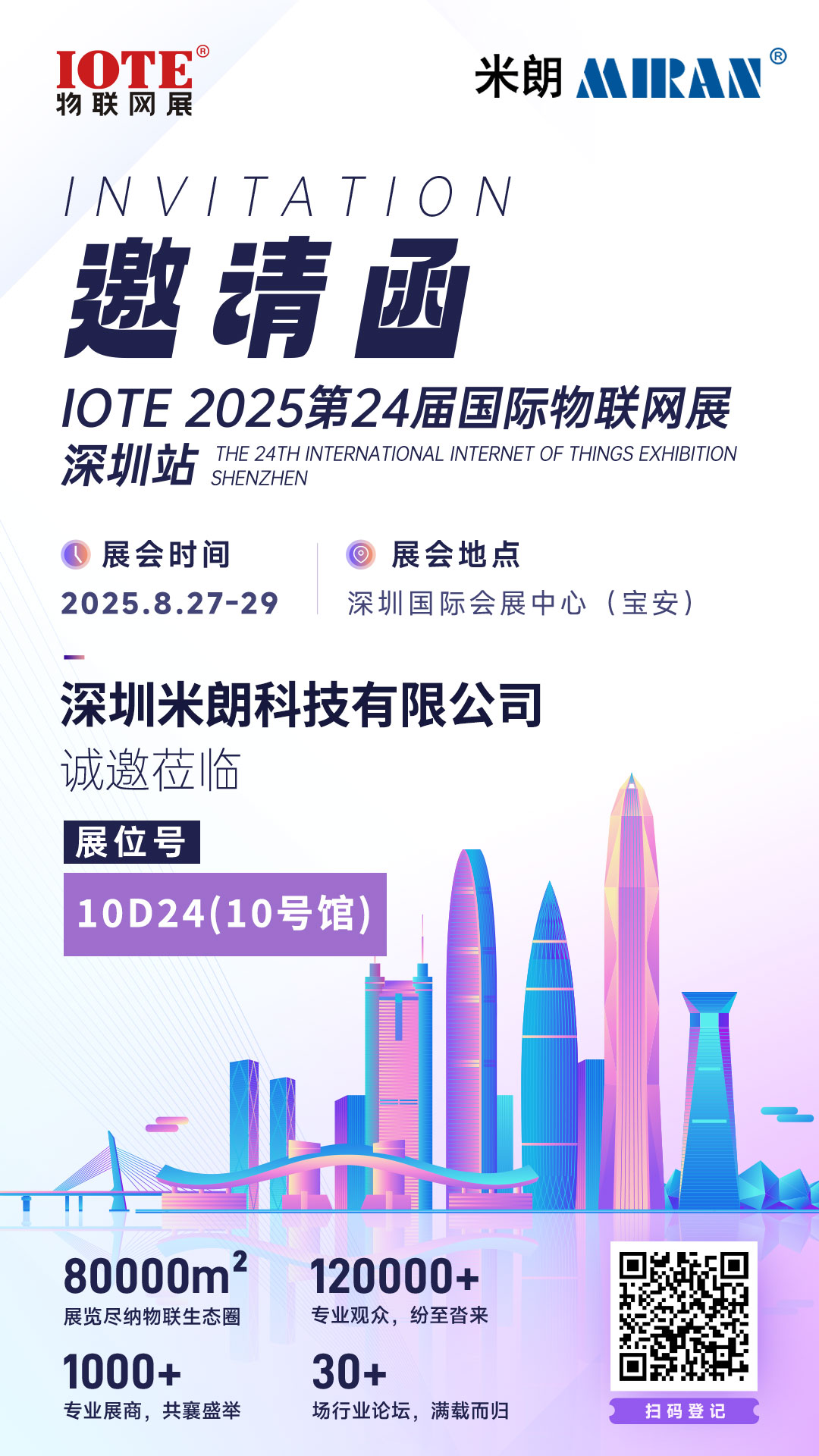米朗科技诚邀您来参观,预约扫码报名有惊喜福利哦~我们8月27-29日深圳见!