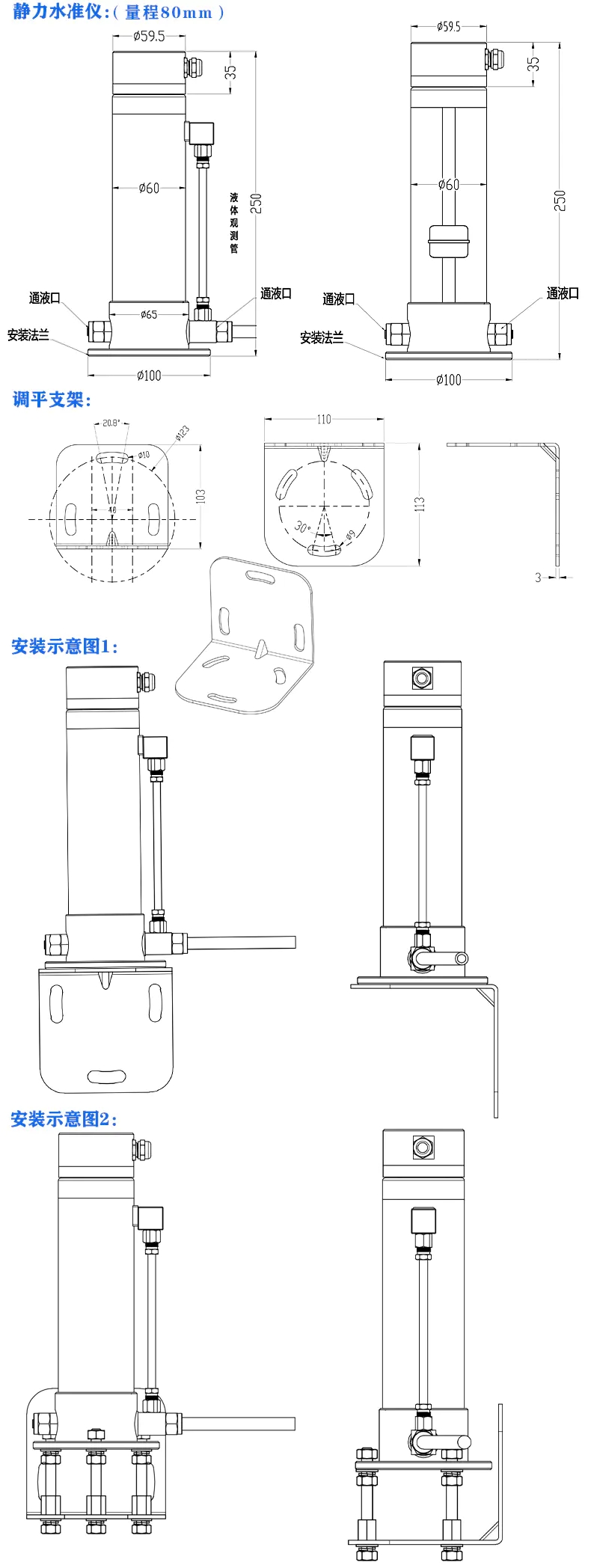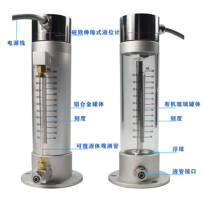 磁致伸缩式静力水准仪是一种高精密液位测量仪器,由一个高精度的磁致伸缩液位计加上储液罐,液位浮球,调平支架,水管等部件构成。在使用中,多个静力水准仪的容器用通液管联接,每一容器的液位由相关传感器测出,进而可测出各测点的液位变化量。