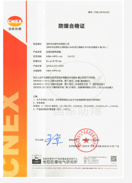 本安型拉绳/拉线位移传感器证书(模拟量信号输出)