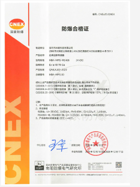 本安型拉绳/拉线位移传感器证书(数字信号输出)