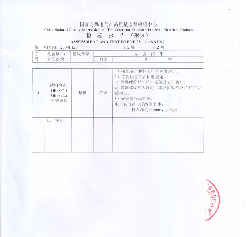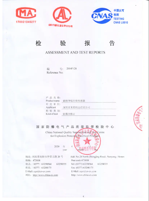 防爆型磁致伸缩位移/液位传感器检验报告