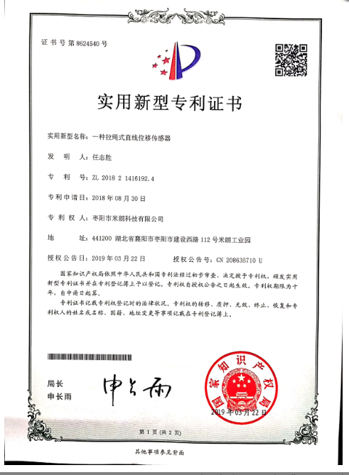 米朗科技荣任湖北省传感器行业协会副会长单位证书