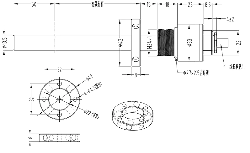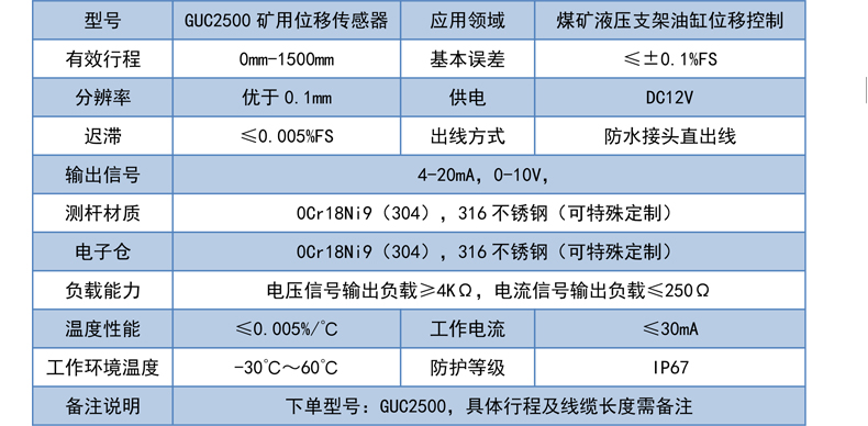 二、GUC2500矿用本安磁致伸缩位移传感器技术参数: