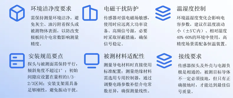 ★对材质敏感:需考虑被测物导电性、环境温湿度及电场干扰